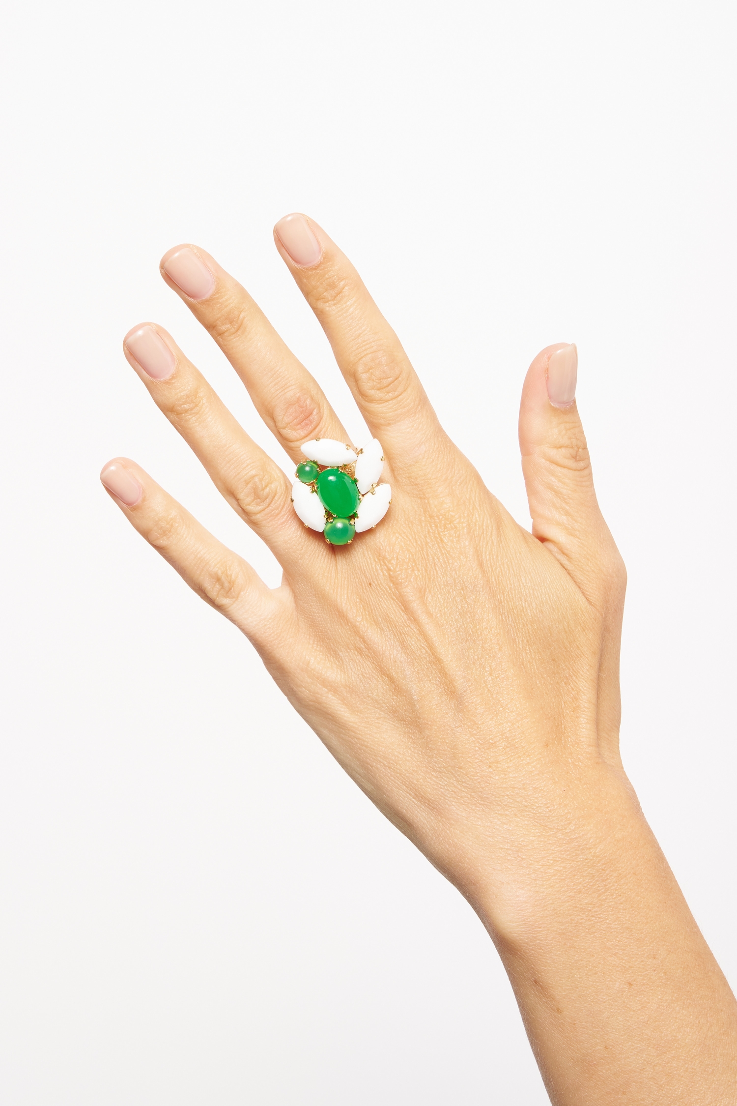 La bague Croisette est une invitation à l’été, entre élégance rétro et modernité assumée. Son assemblage délicat de cristal blanc et quartz rose crée un bijou lumineux et féminin