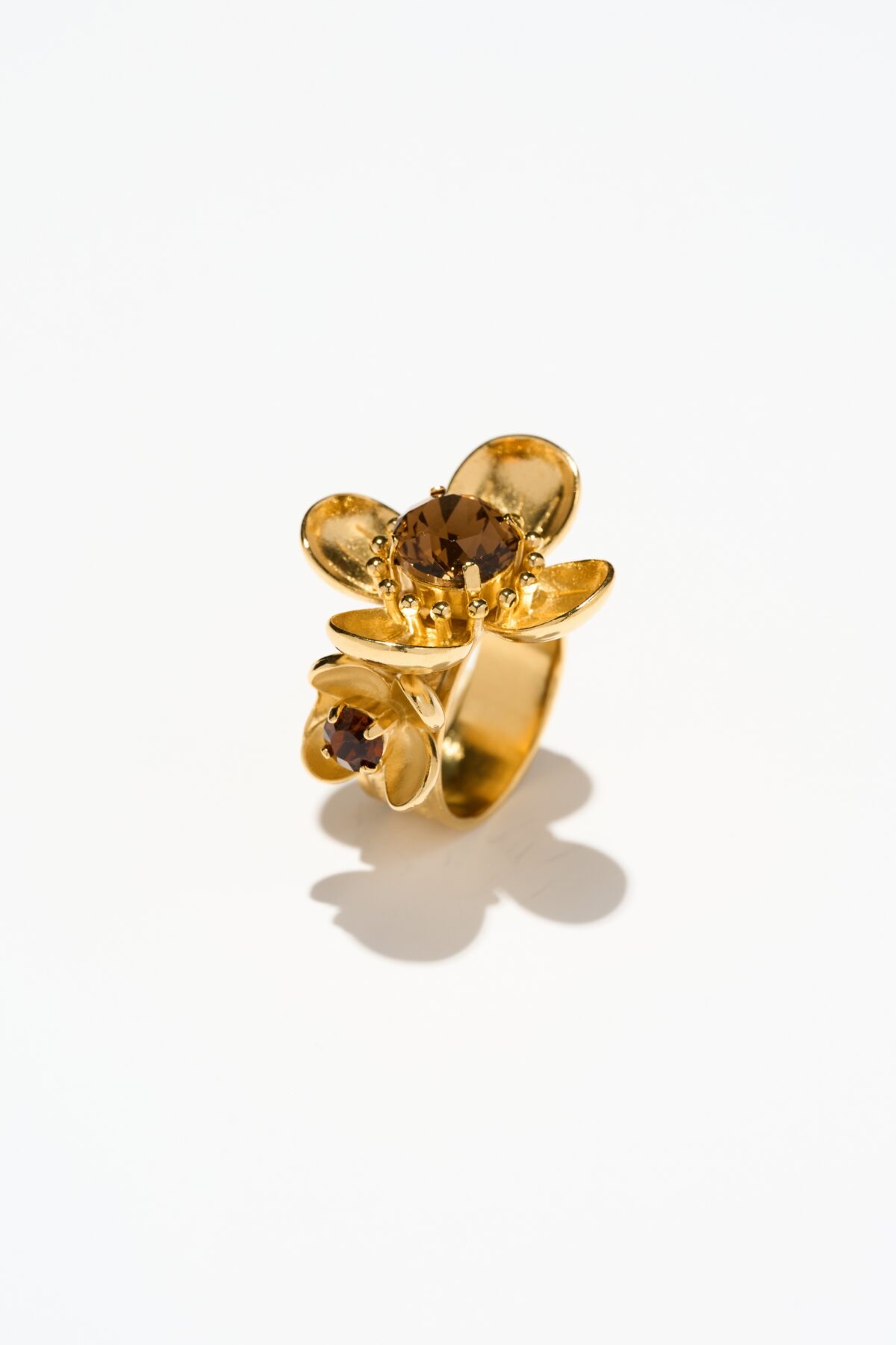 Cristaux colorés et Fleurs de métal dorées à l’or fin 24 carats