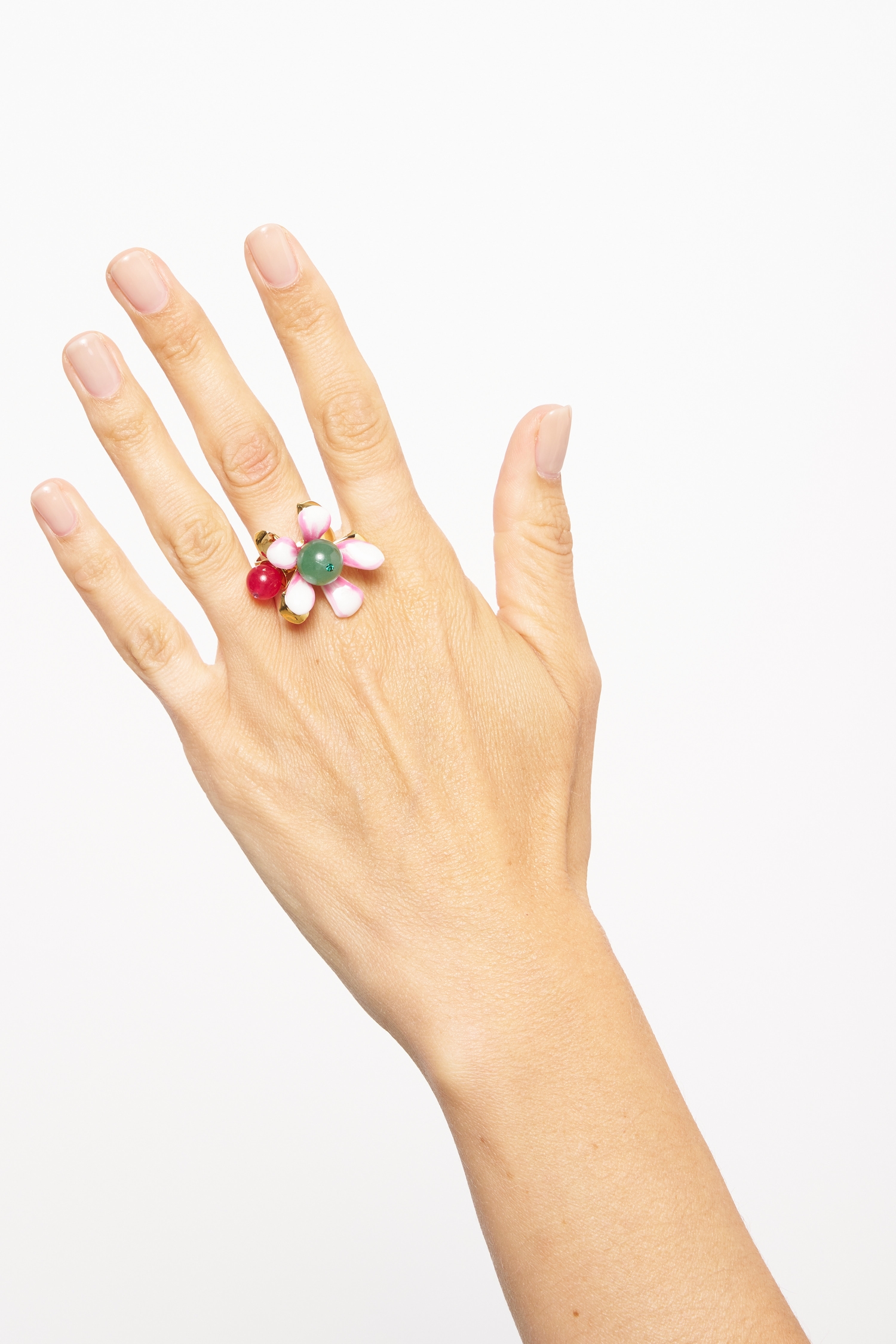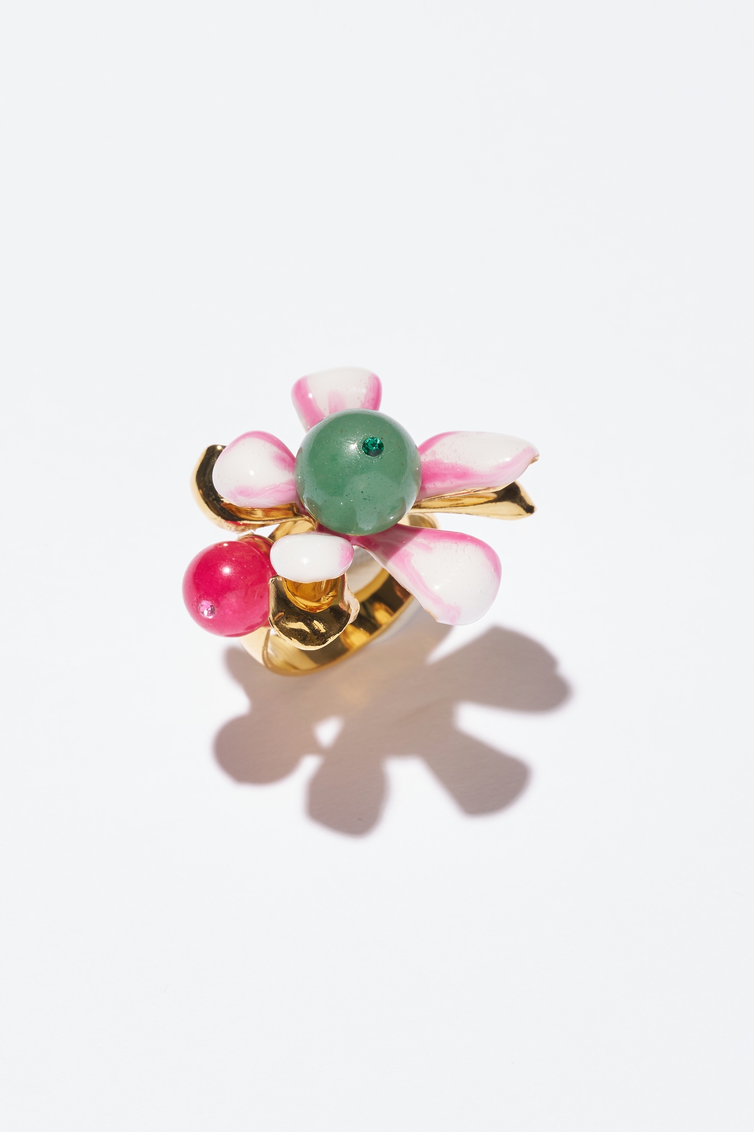 GRC 50 – Bague ajustable femme ornée d’une fleur épanouie et de pierres fines contrastés