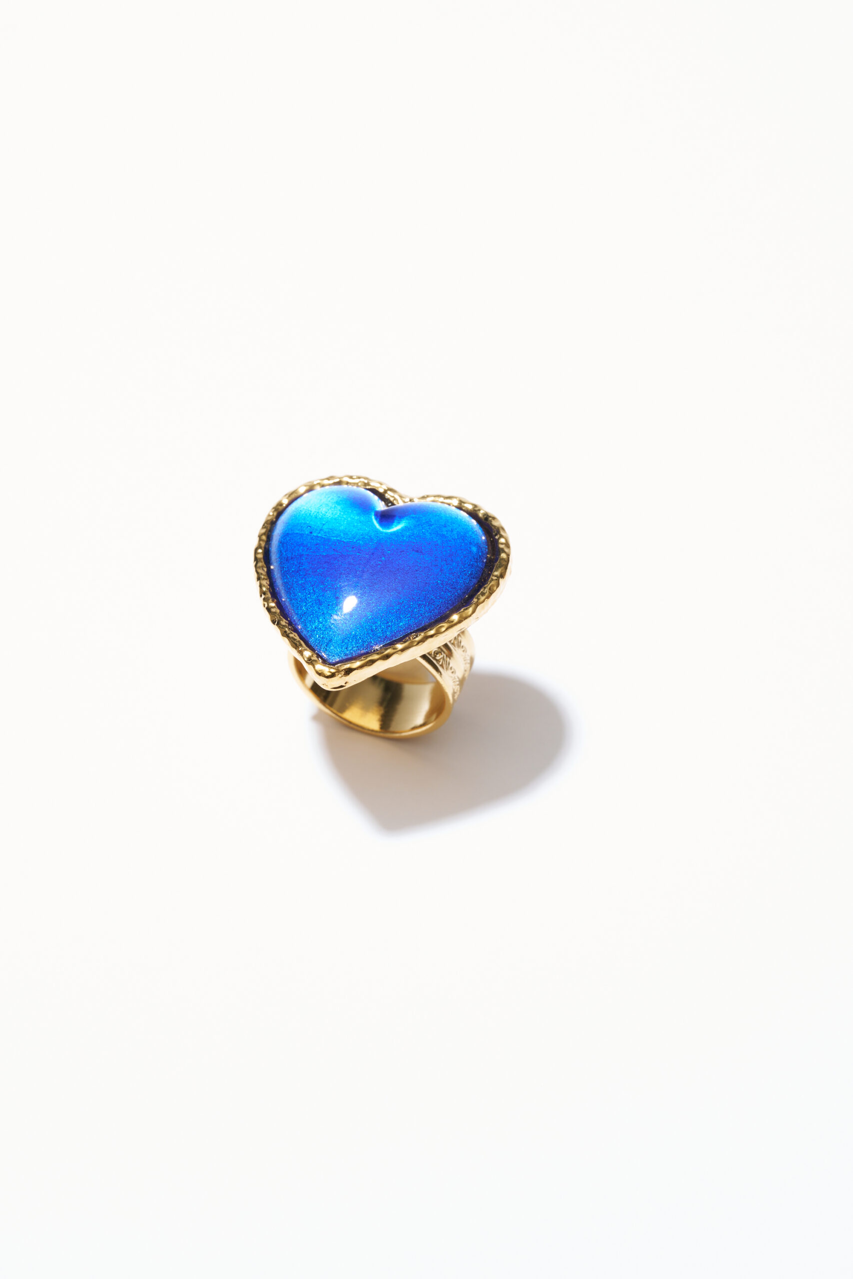 Composition : Cabochon pop et coloré sur une structure en métal dorée à l’or 24 carats