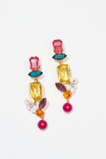 Pâte de verre facettée, fleurs de métal émaillées, cabochons, pierres de