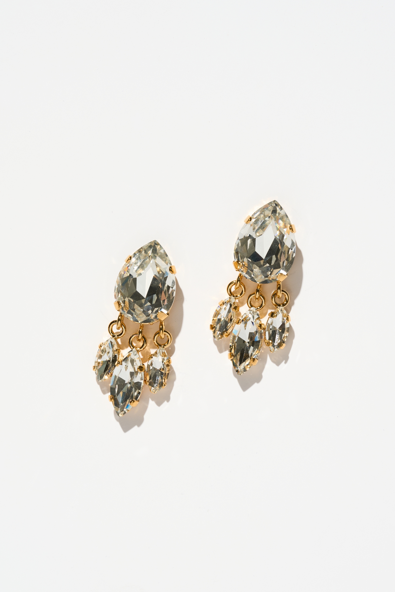Des boucles d’oreilles percées sculptées autour d’un éclat central, où chaque cristal se répond dans un jeu de lumière élégant et audacieux.