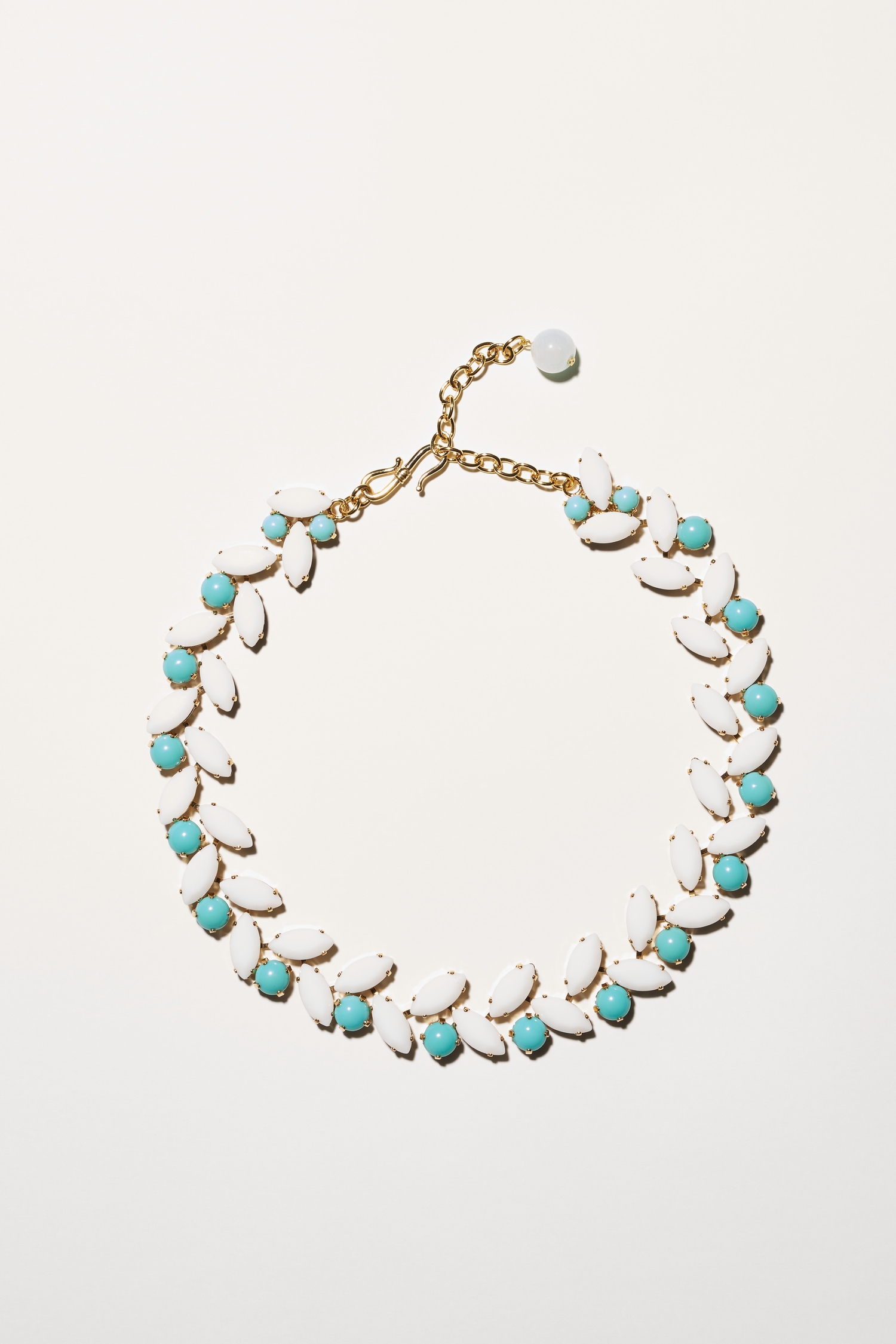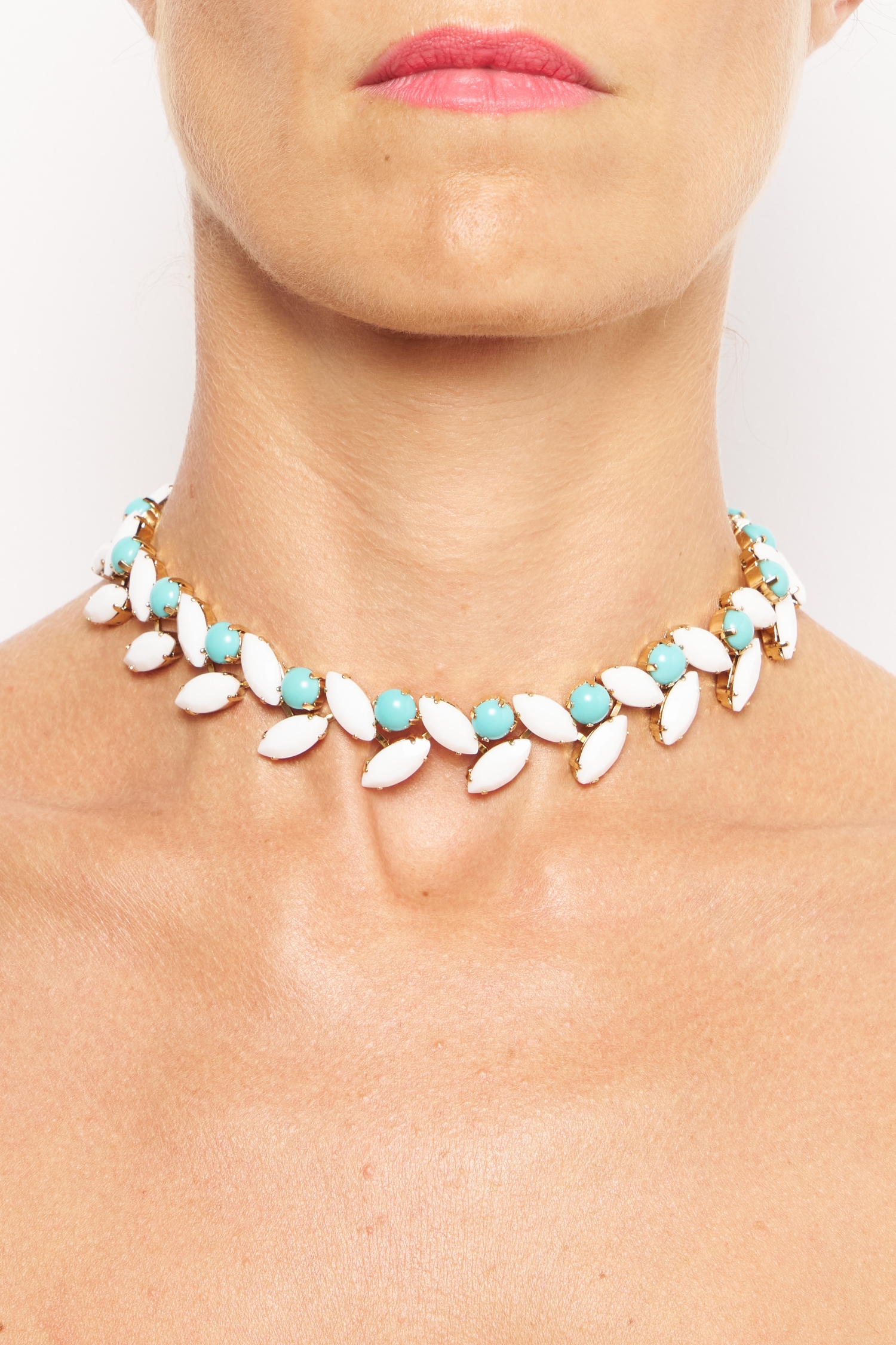 Inspiré par la montée des marches, il associe finesse, éclat et féminité. Ses navettes en cristal blanc et ses perles colorées dessinent une silhouette élégante et raffinée, idéale pour sublimer un décolleté d’été.