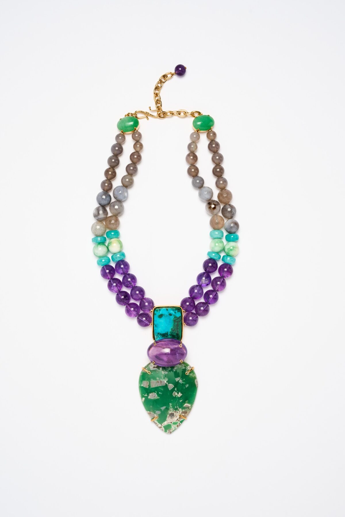 Two-row necklace – Amethyst and turquoise – Unique piece