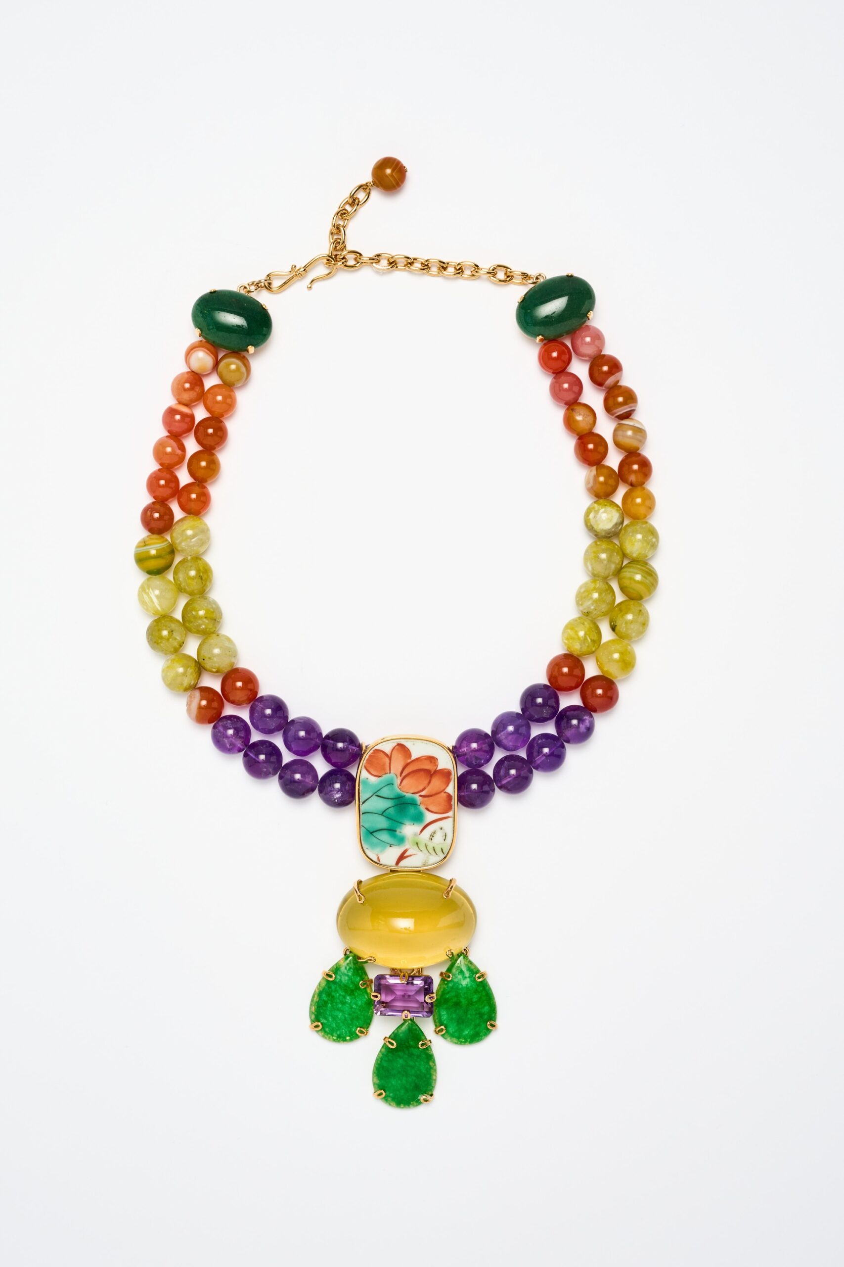 Collier deux rangs – Citrine et Jade – Pièce unique