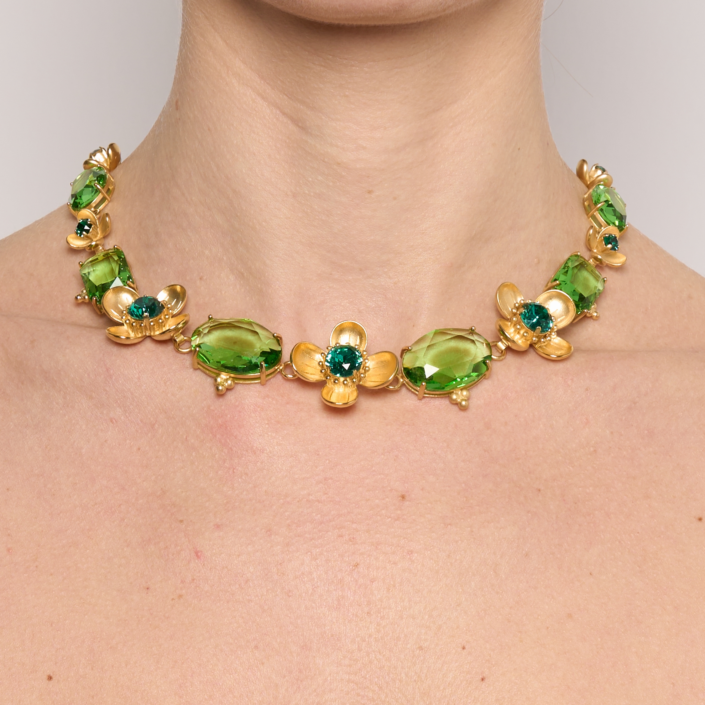 Cristaux colorés et Fleurs de métal dorées à l’or fin 24 carats