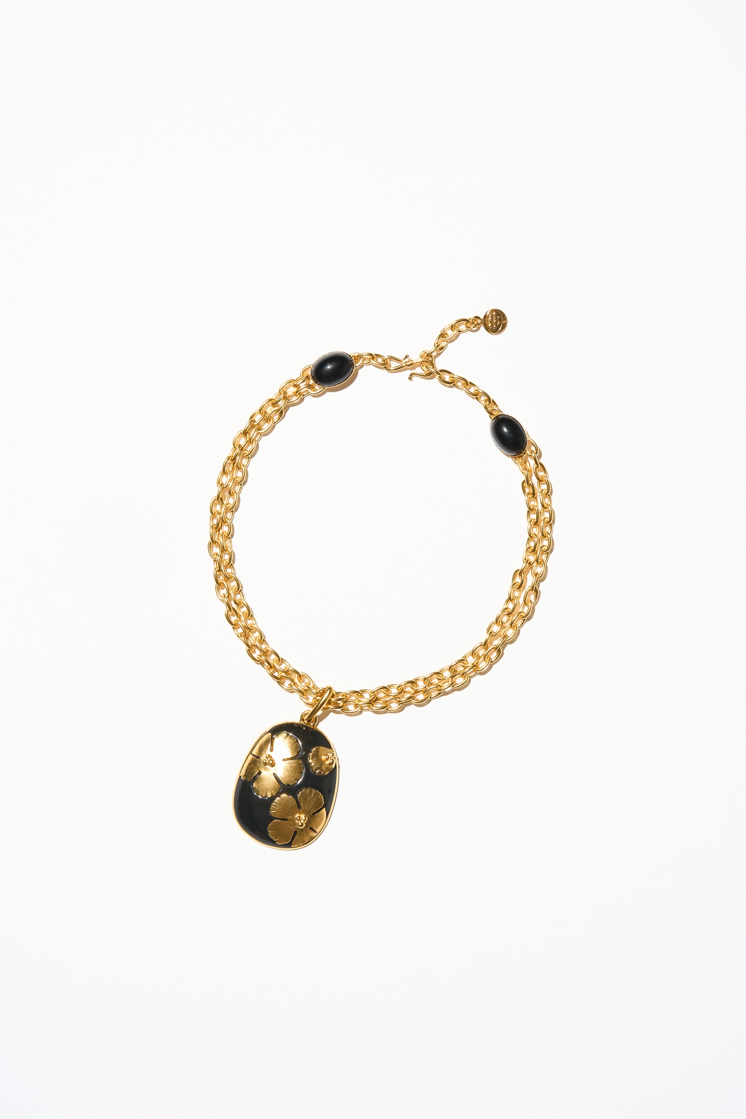 “Golden Flowers” Necklace – Green and Black – MAGNOLIA