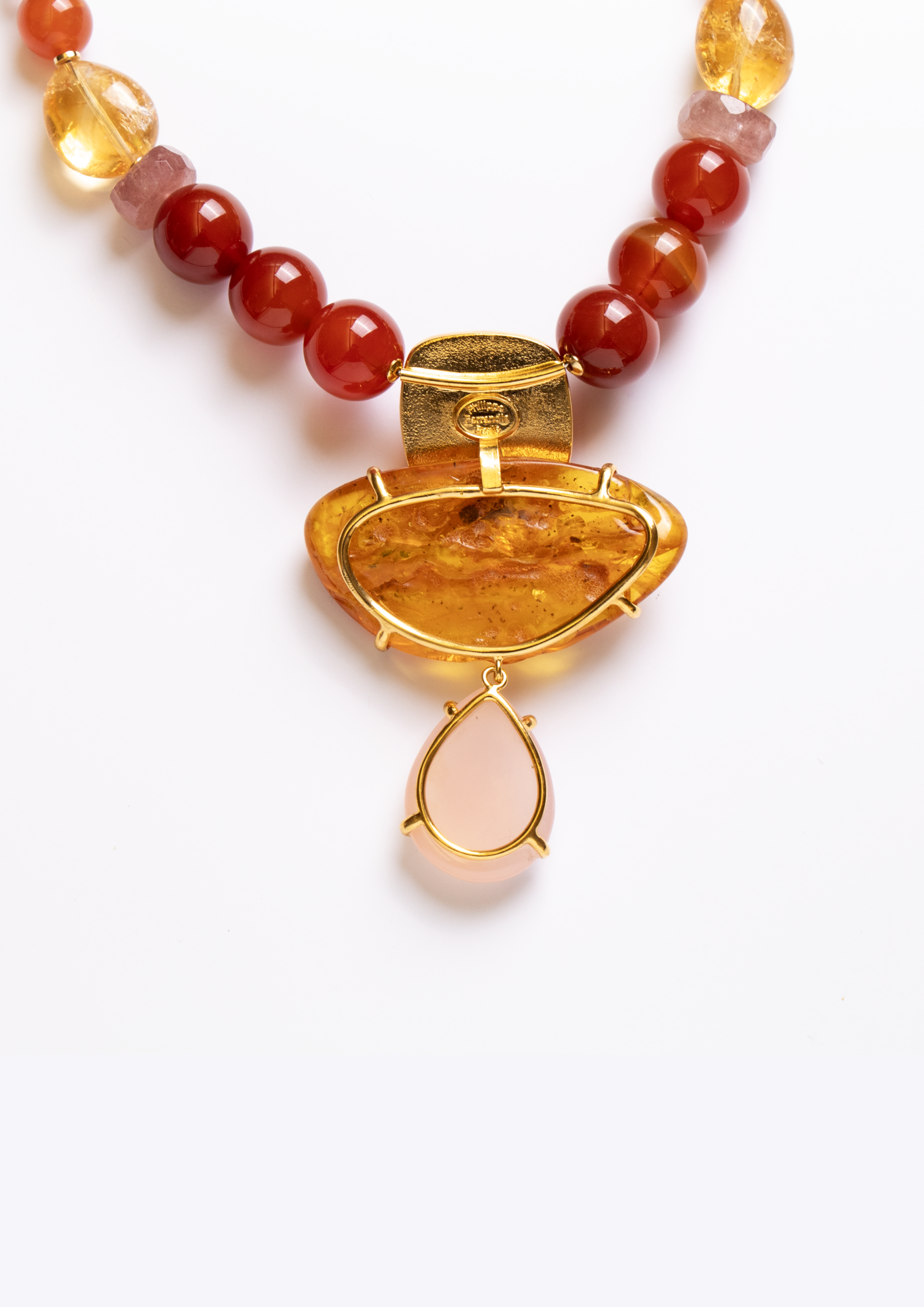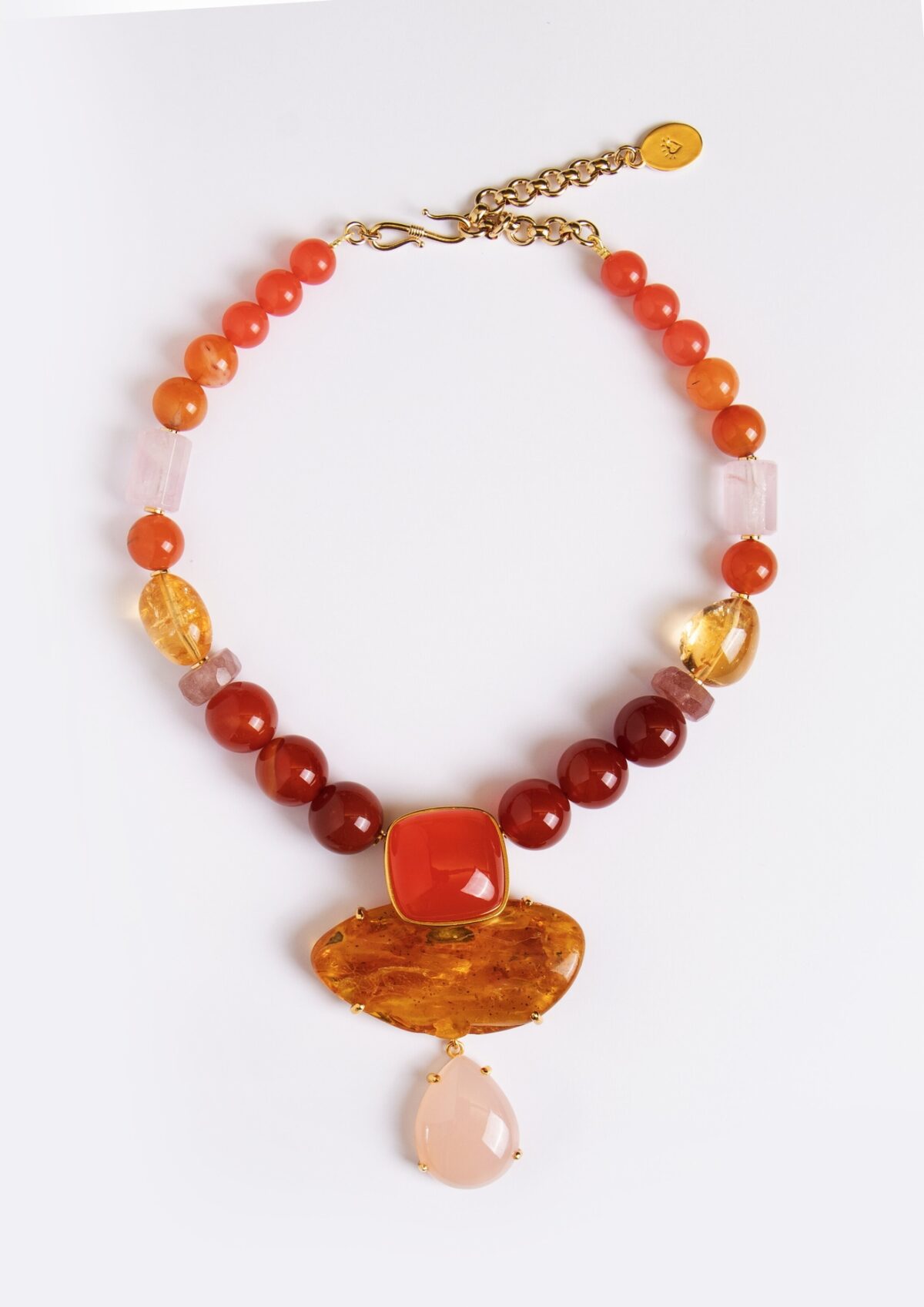 One-of-a-kind necklace – carnelian, amber, and rose quartz
