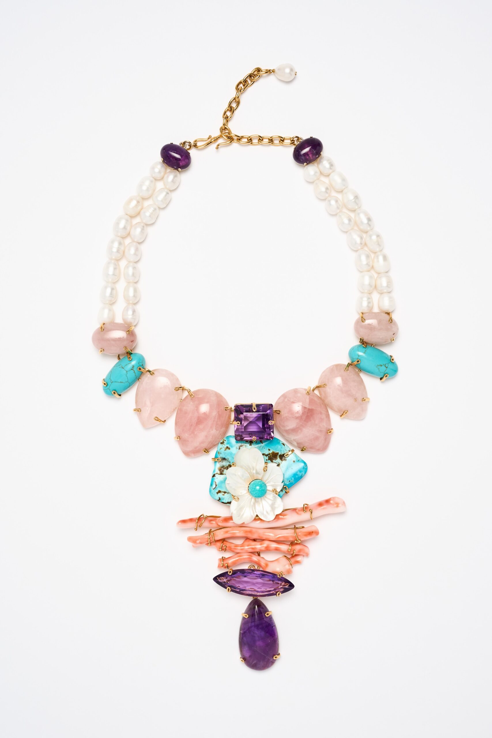 Collier « pink lagoon » – Corail & Turquoise – Pièce unique