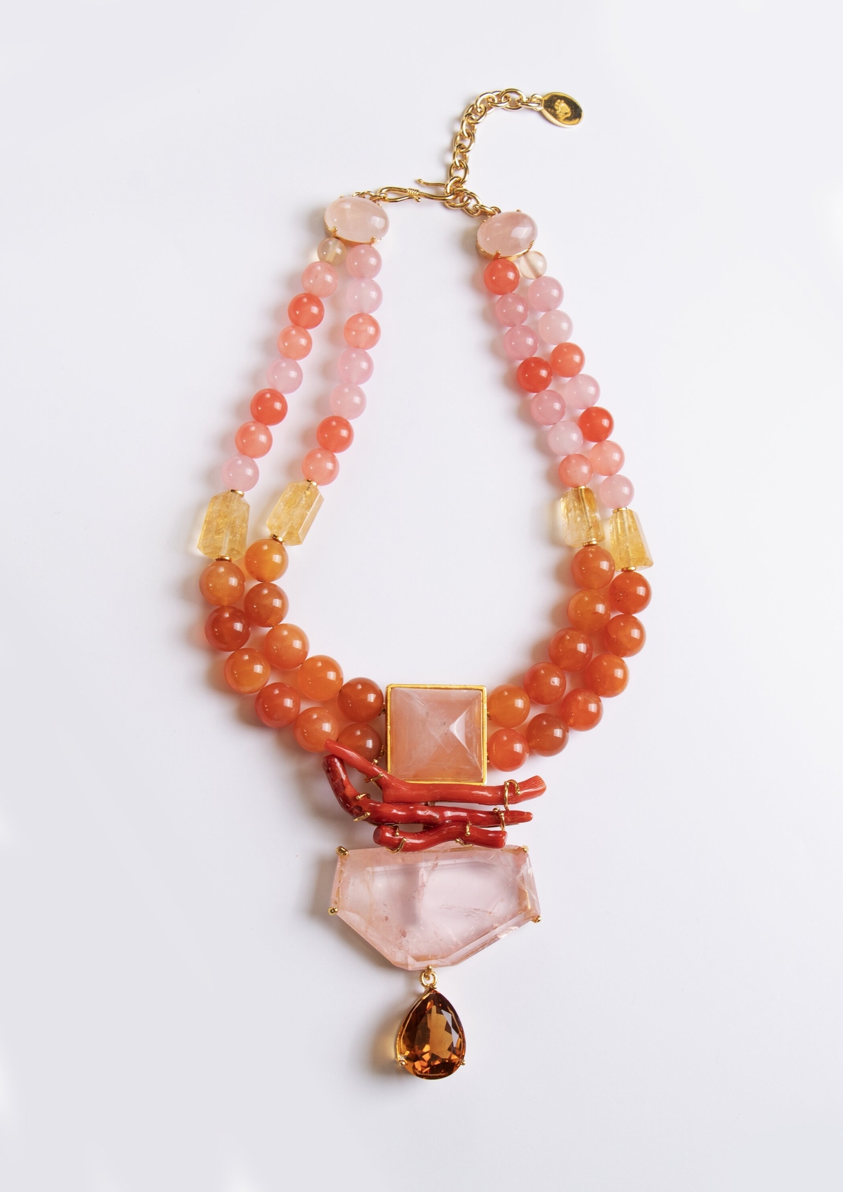 “Quartz and Coral” Necklace – One-of-a-kind piece