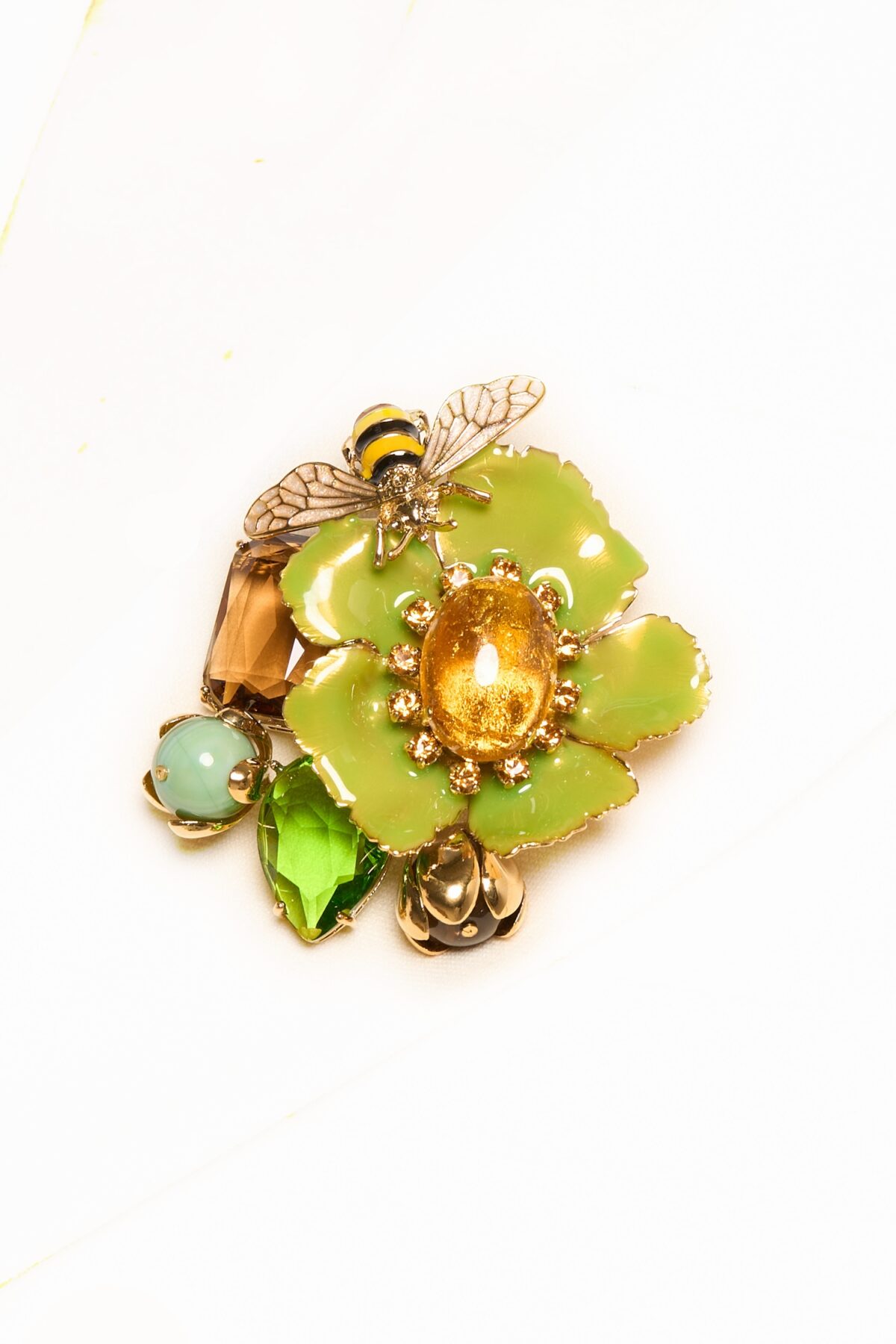 Fleurs de métal finement émaillées sur une structure de laiton doré à l’or 24