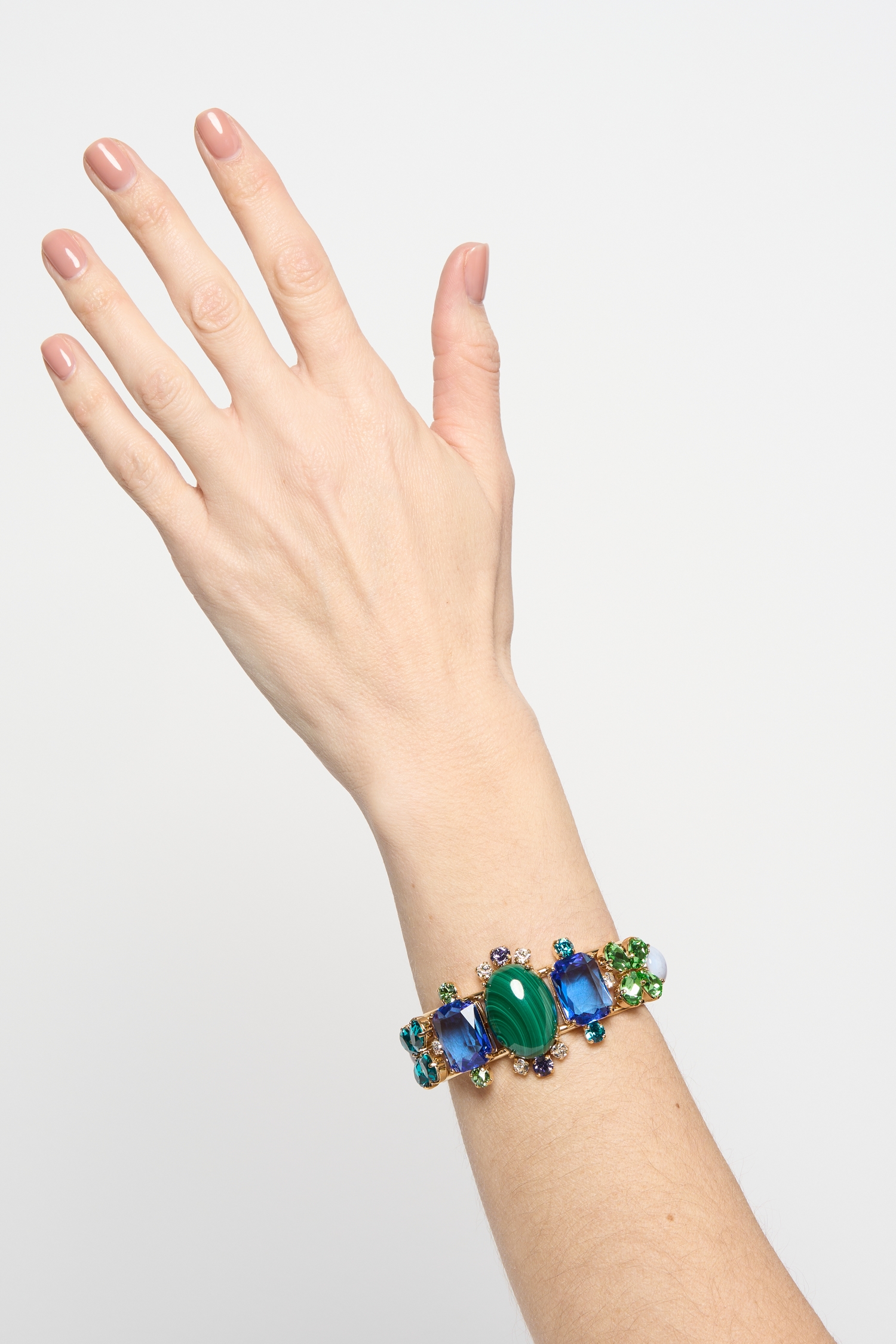 Malachites, Lapis-lazuli, sertis de cristaux, sur une structure dorée à l’or fin 24 carats.