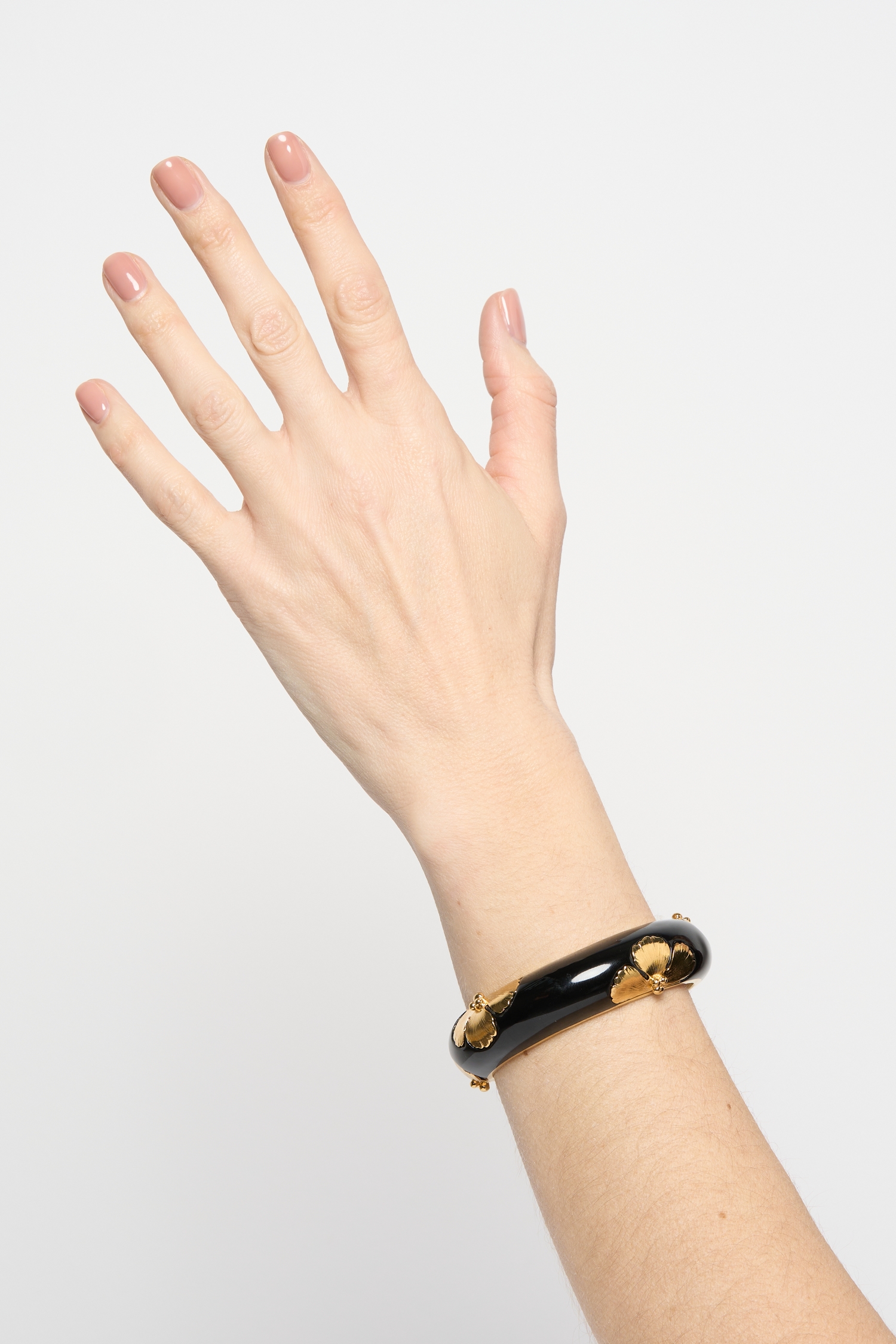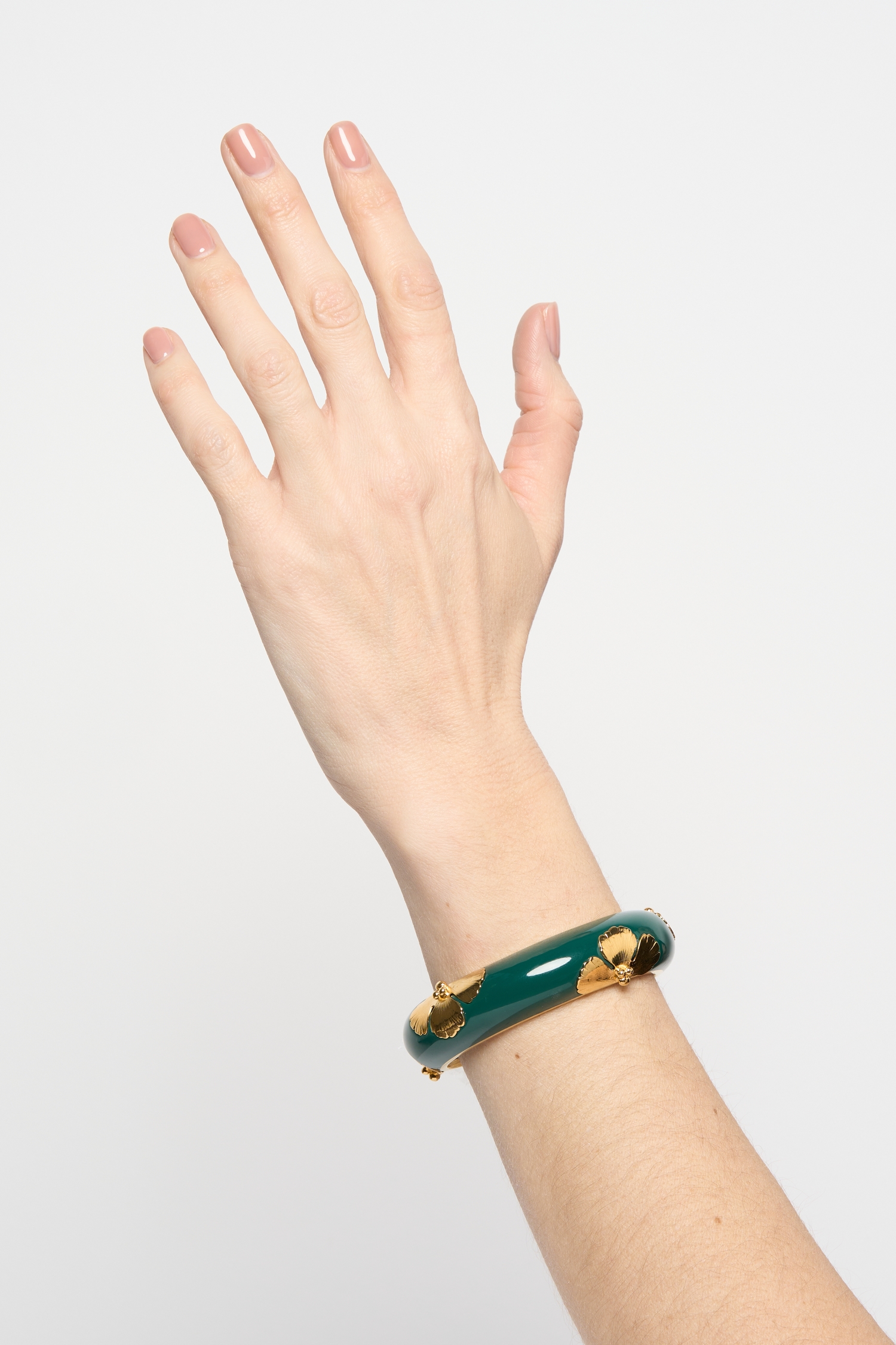 Fleurs de métal dorées à l’or fin 24 carats, perles de verre, résine colorée