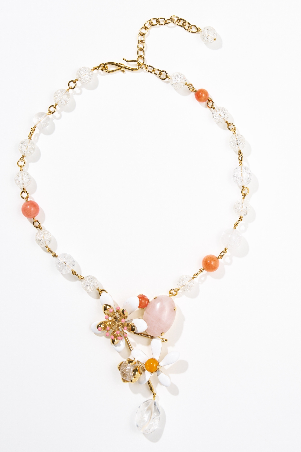 Ce collier NÉROLI BIGARADE pare le cou d’un reflet nacré de fleurs d’agrumes, évoquant une romance fraîche et une joie partagée.